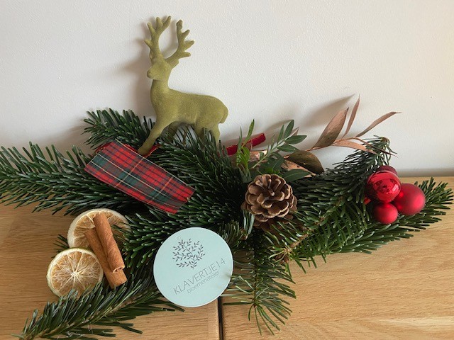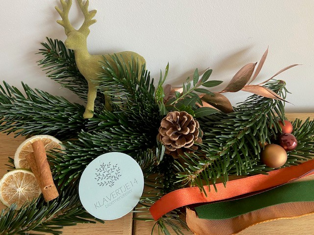Het bloemstuk oogt magnifiek en zal heel het huis onderdompelen in een magische kerstsfeer.